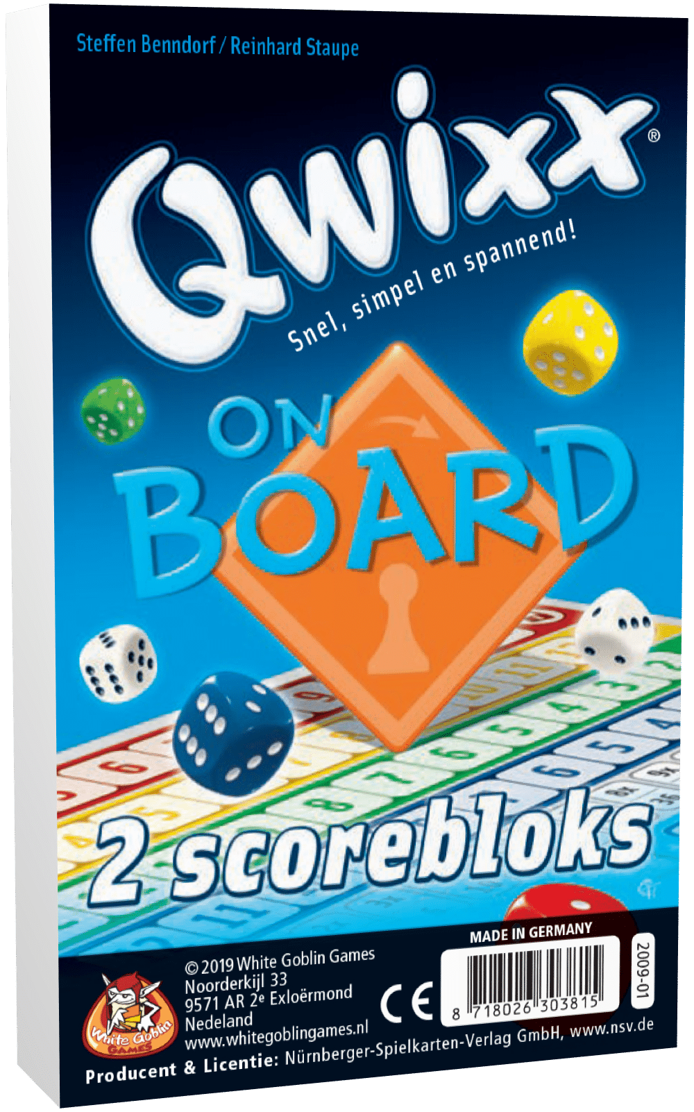 2 extra scorebloks met 80 blaadjes per stuk (160 in totaal) voor het populaire dobbelspel QWIXX ON BOARD.