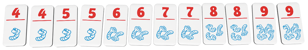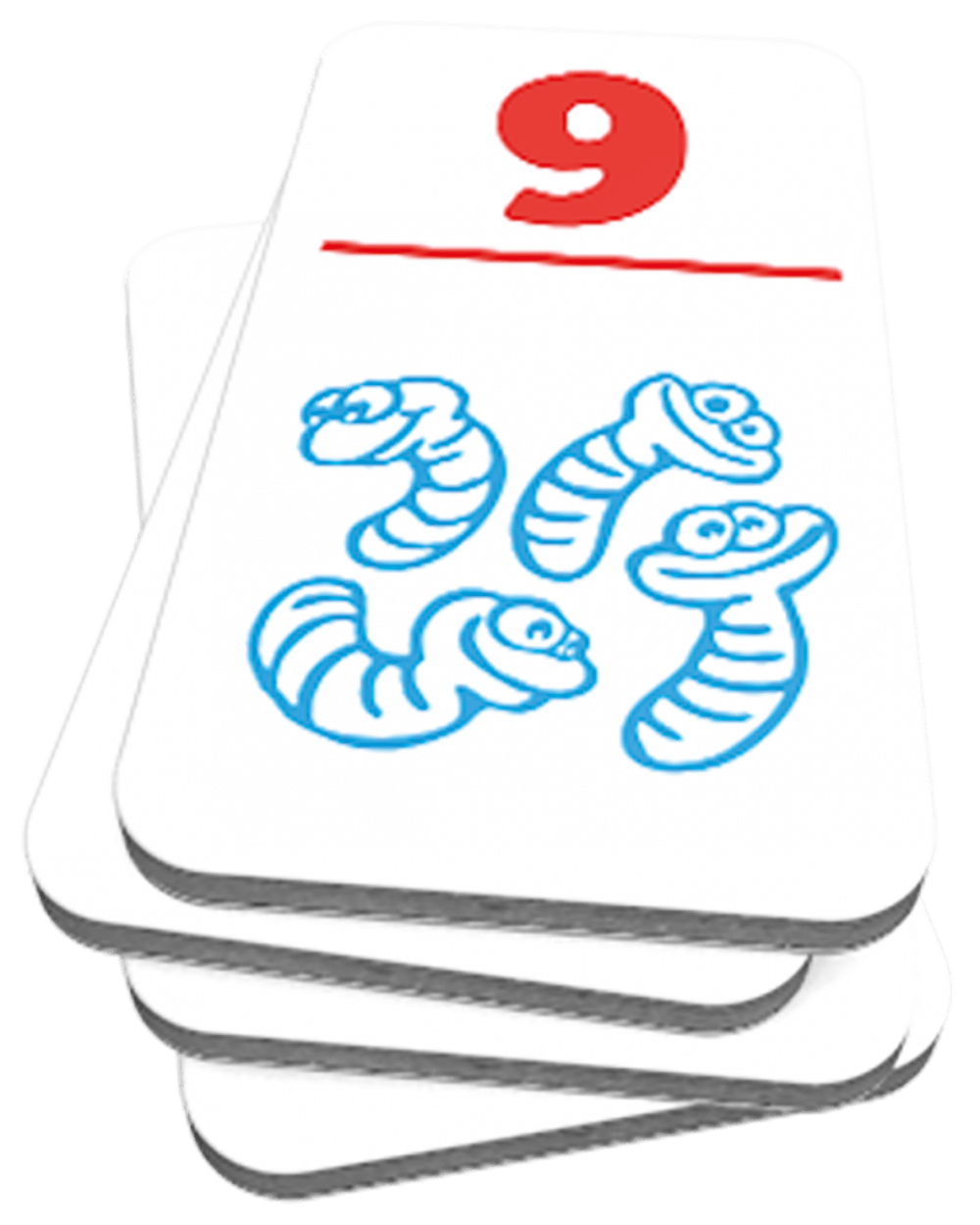 Vereenvoudigde variant van het vlotte dobbelspel Regenwormen. In deze versie tellen de kinderen eenvoudigweg het aantal verzamelde symbolen. Zo is dit dobbelspel ook prima te spelen voor de kleintjes. Met stevige kartonnen tegels voor jarenlang speelplezier!