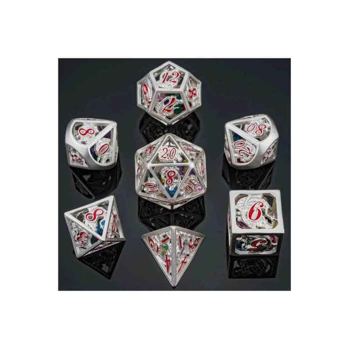 Silver Dragon with Gems – Hollow Metal Dice set – 7 stuks