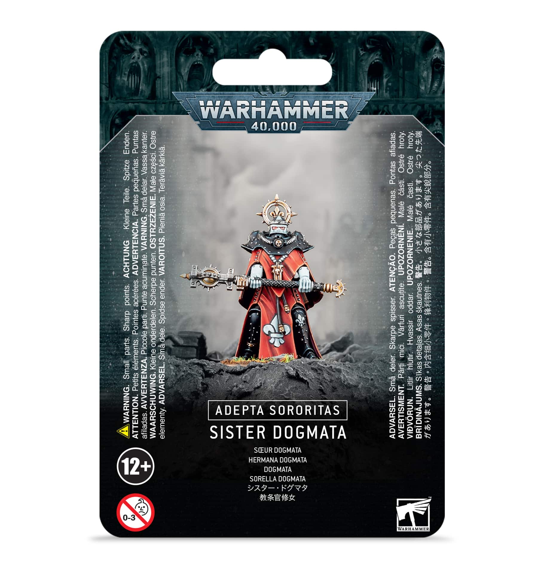The Sister Dogmata is a figure revered and feared in equal measure within her order, as only she has the authority to condemn a Battle Sister to the ranks of the Repentia with but a word. With shouted prayers and swings of her colossal mace, the Sister Dogmata drives the Adepta Sororitas to ever greater heights of faith and fury under her steely gaze.