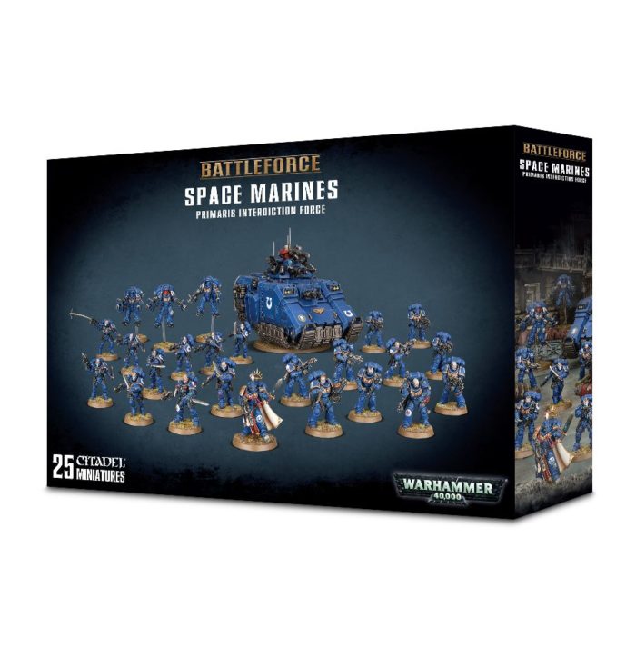 Whether you’re looking to start a new Adeptus Astartes collection, or are looking to bolster an existing force with a solid selection of Primaris units, the Space Marine Primaris Interdiction Force has you covered. Not only does it save you money, it provides you with a flexible variety of units in the form of a powerful Repulsor Tank. A hard-hitting combination of infantry squads and even a commander to lead them. The set includes the following units: