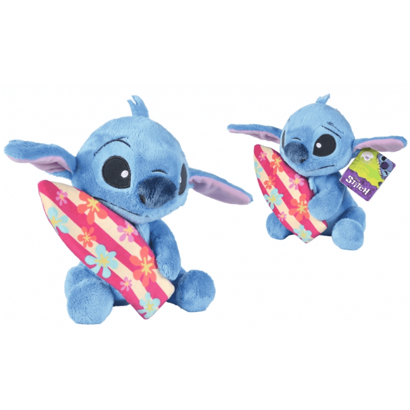 Official Disney licensed Stitch holding a surfboard. Soft and cuddly, he stands aprox. 25 cm tall.