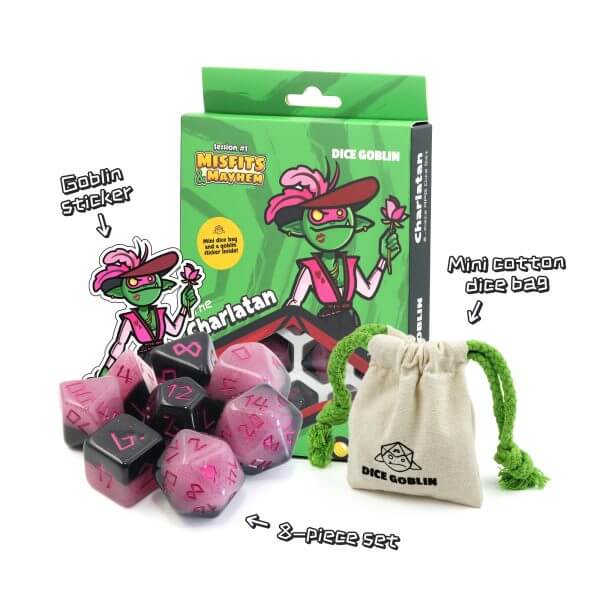 The Charlatan – Session #1 Dice Set – 8 stuks + Mini Dice Bag