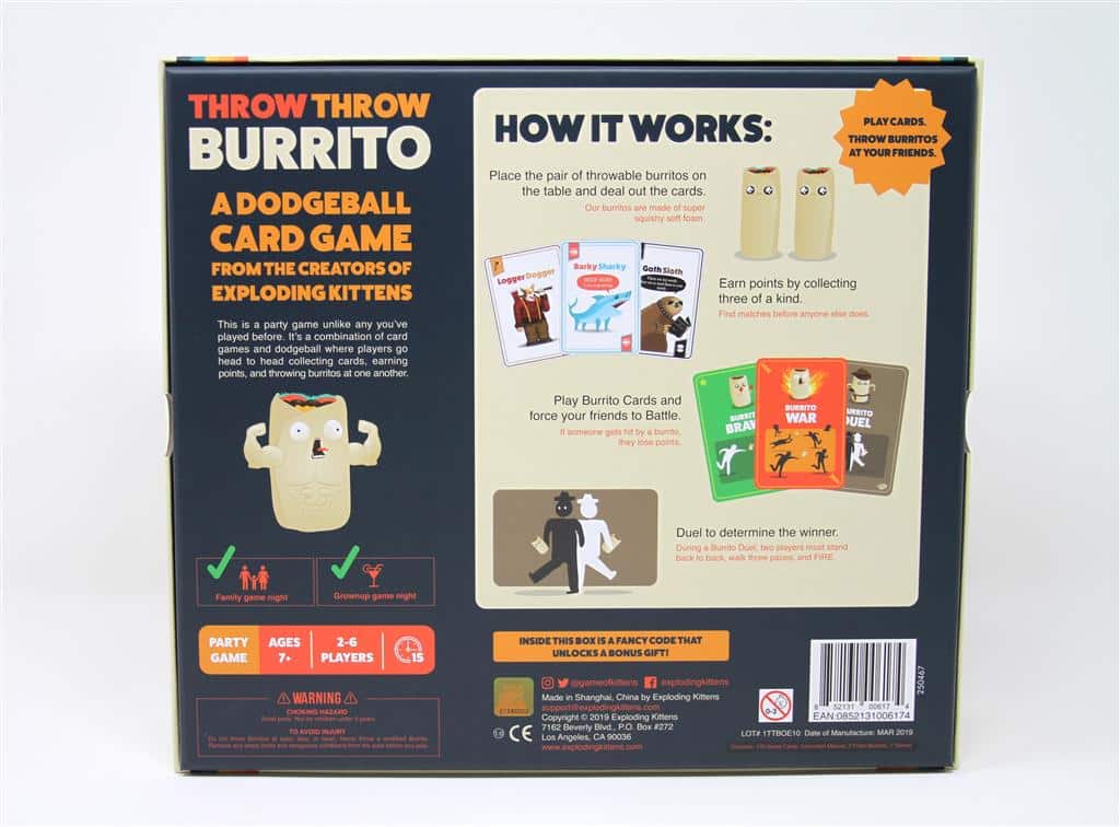 Throw Throw Burrito – Throw Throw Burrito is een grappig partyspel – van de makers van Exploding Kittens – dat een combinatie is van een kaartspel en trefbal.