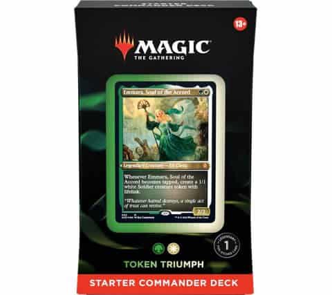Om dit populaire multiplayer format te ondersteunen heeft Wizards of the Coast vijf starter commander decks ontworpen voor de beginnende commander speler. Elk deck bevat 100 blackbordered kaarten waaronder één prachtige foil commander.