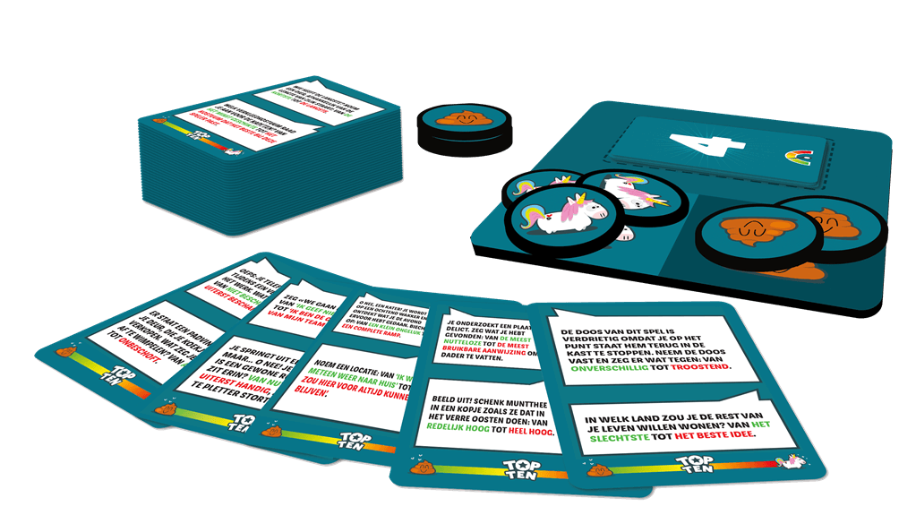 Top Ten is een coöperatief spel, alle spelers maken deel uit van hetzelfde team. In dit spel probeert de Kapi’Ten de cijfers te raden op de kaarten van de overige spelers.