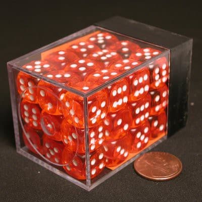 Translucent Orange/white D6 12mm. 36 zes-zijdige dobbelstenen voor verschillende spellen.