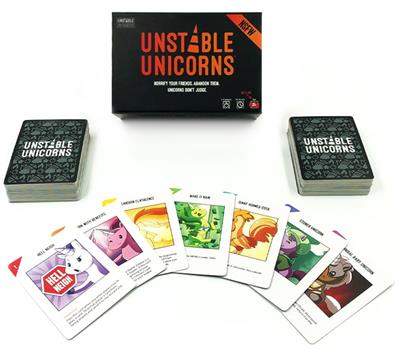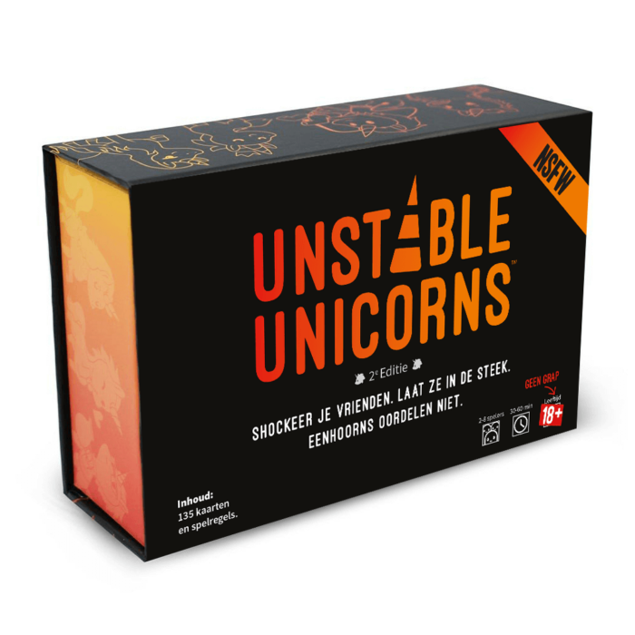 Dit strategisch kaartspel combineert jouw twee van jouw favoriete onderwerpen: eenhoorns en verwoesting. Dit NSFW basisspel van Unstable Unicorns bevat alleen iets meer expliciete eenhoornkaarten dan het normale basisspel, zoals een Krolse Kittenhoorn, Eenhoornorgie en de Dekhengst Eenhoorn. Geweldig toch?