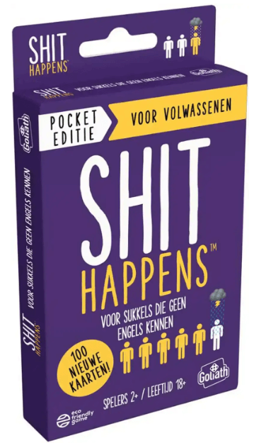 Volwassenen – Shit Happens pocket edition is hét hilarische partyspel voor iedereen met een gezonde dosis zwarte humor. Dit spel daagt je uit om de meest bizarre, pijnlijke of ronduit gênante situaties op de ‘Shit-O-Meter’ te rangschikken. Het merk Goliath Games heeft hiermee een absolute hit te pakken in de categorie volwassen spellen. Ben je op zoek naar een spel voor een avond vol gelach en discussies? Dan is dit de perfecte keuze voor jou en je vrienden.